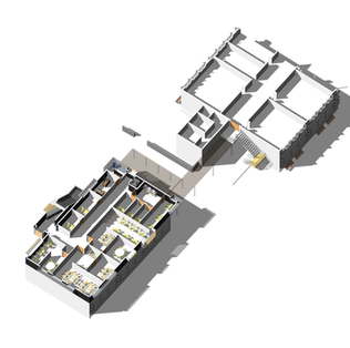 The project is an extension of an existing high-school - created by adding a light structured second floor to an existing single floor structure located next to the 2 floor main structure of the school.