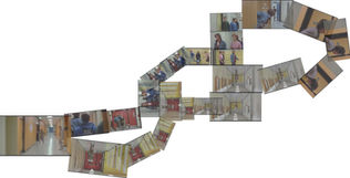 The presented mapping of the scene shows the space in which the interaction takes place, as it is expressed through cinematic means. In the map the size and the positioning of the images one in regards to the next refers to the angle and direction of the camera and the proximity of the camera to the subject in the scene. The combination of the space presented in frame of the scene and the way it connects to the space in the following scene has lead to a physical 3D model map.